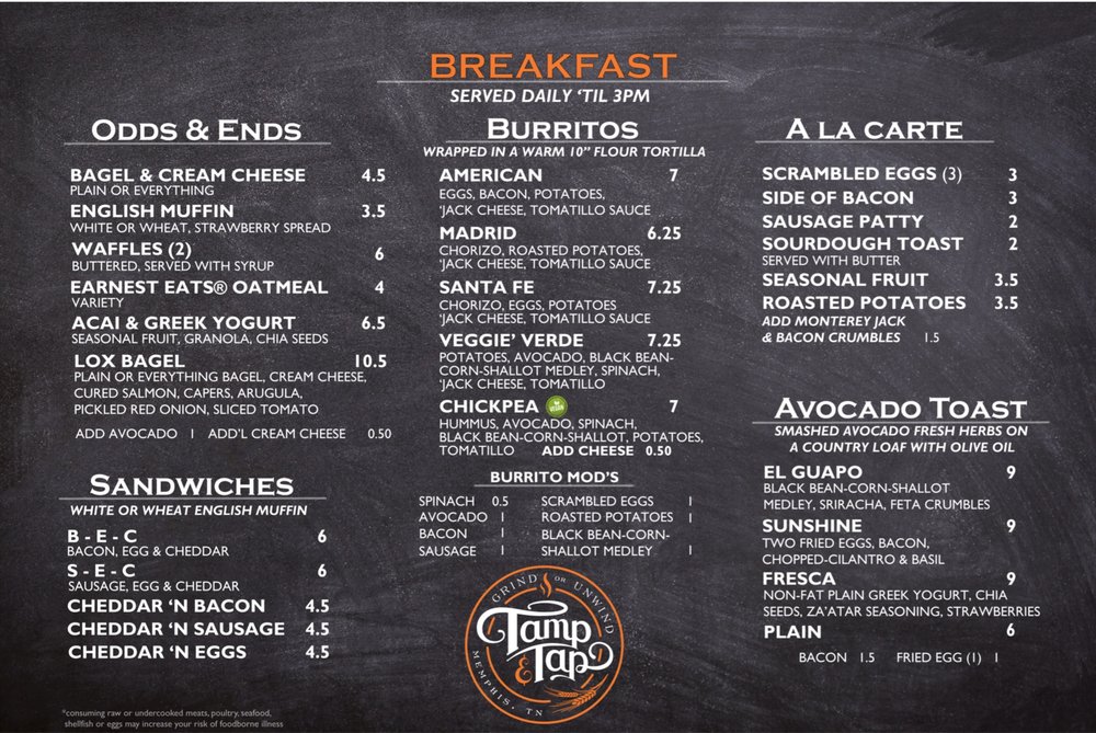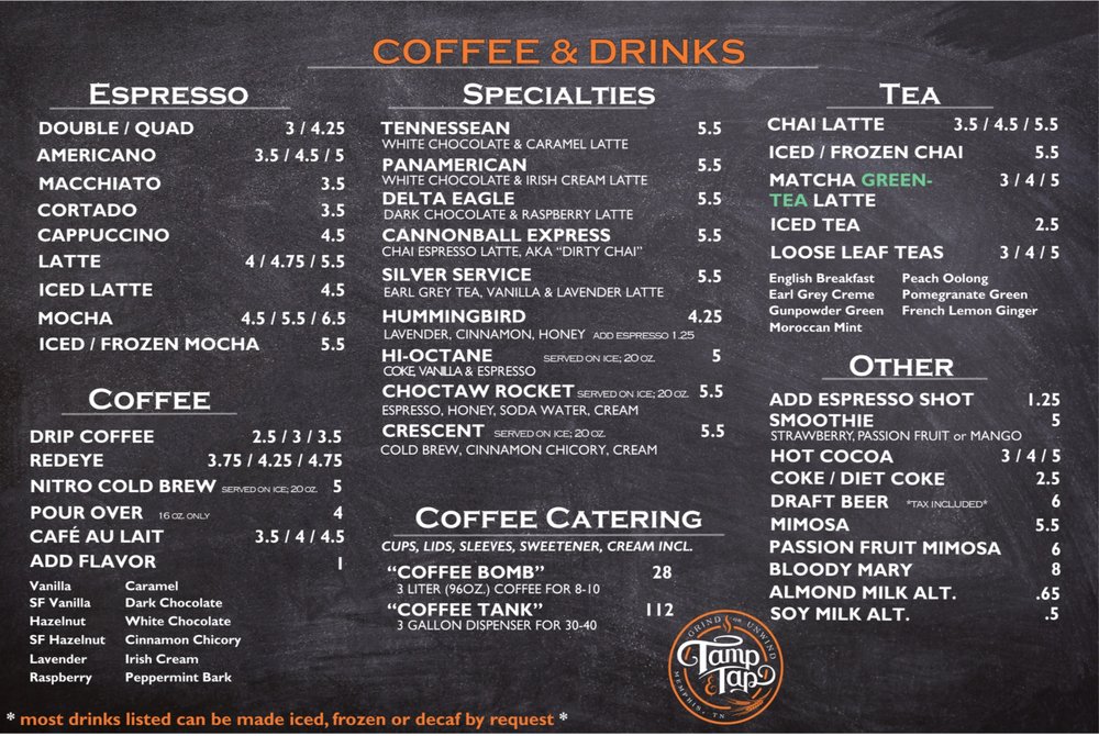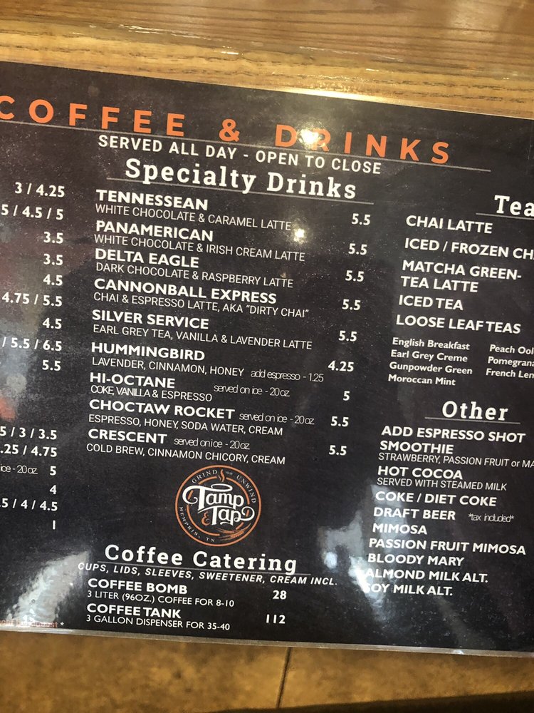 Located in the heart of Memphis, Tamp & Tap offers a trendy and casual setting for coffee and tea enthusiasts. With a menu that includes a variety of sandwiches and vegan options, this spot is perfect for breakfast, brunch, or lunch. Customers rave about the delicious coffee, diverse selection of dishes, and friendly staff. The atmosphere is described as great for working or relaxing, with free Wi-Fi and ample seating. Reviewers highlight the burritos, lattes, and unique drink options as must-tries. Whether you're looking for a productive work spot, a delicious meal, or a quiet place to unwind, Tamp & Tap is the perfect choice. Visit today at 122 Gayoso Ave Memphis, TN 38103 or call (901) 207-1053 to experience it for yourself.